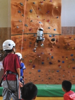 当所は、3m・9mのクライミングウォールを備えており、冒険的な教育を行うための手段として実施することが可能です。クライミングウォールでは、参加者が身体的・精神的なチャレンジから、新しい自分を発見し、他者に対する意識に気づくことで、より良い人間形成を図ることを目指しています。
