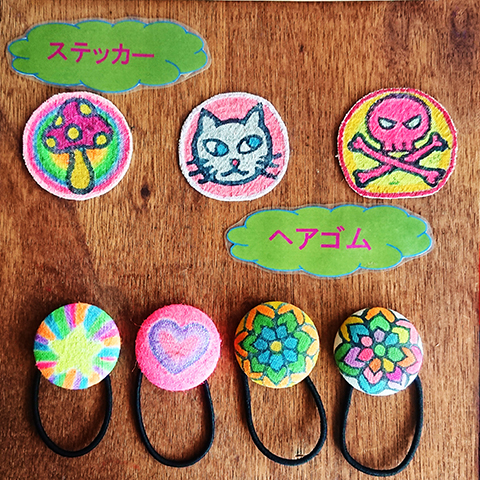 ①ヘアゴムとステッカー作り 200円 ②アクセサリー、バッグ、帽子などの布雑貨 300~1,500円程度 |