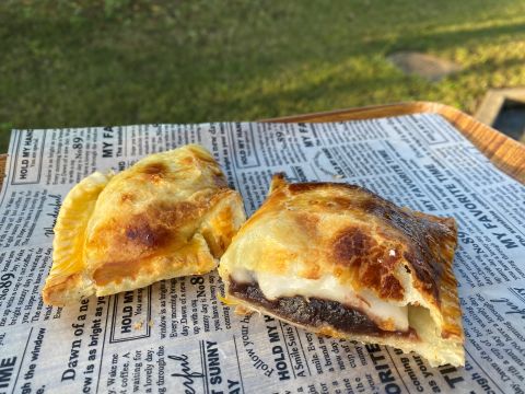 ダッチオーブンで焼き上げるのは、お餅とあんこが入った和風パイ。サクサクの生地とほかほかあんこの甘さが広がり、寒い日には心までほっこり温まります。 | |