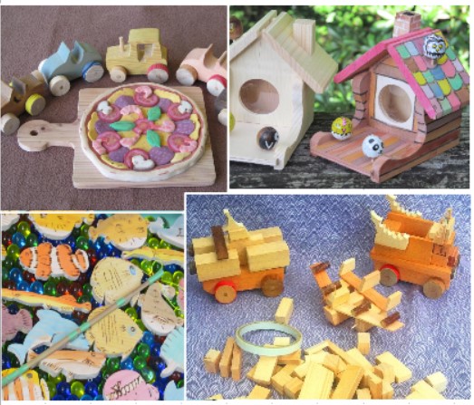 ・こっぱ工作 200円~ ・さかな釣り 300円~ ・木工品の販売 |