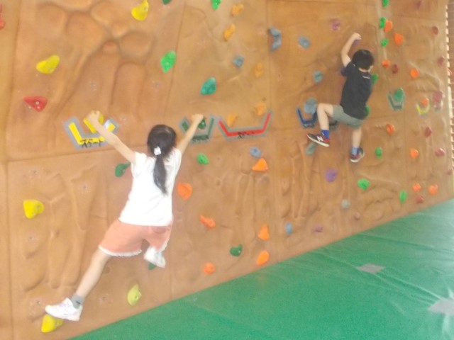 ボルダリング・トップロープ 高さ3m・6m・9mの壁についている石に手をかけ、足をかけ、頂上を目指して登ります。 対象:子ども(中学生以下) 定員:各回クライマー50名 (ボルダリング30名・トップロープ20名) 料金:300円/人 ※3m以上に登るトップロープは、安全確保のため、小学生以上・身長115cm以上・ウエスト52cm以上のお子様に限ります。 |