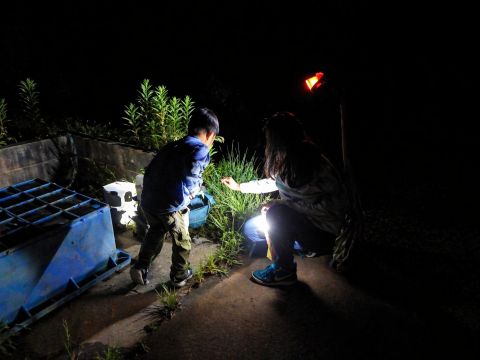 この時期、自然の家はカエルたちの声でにぎわいます。カエルは種類によって鳴き声が異なります。鳴き声の違いに耳をすませながら、森の中を探検します。(雨天決行) | |
